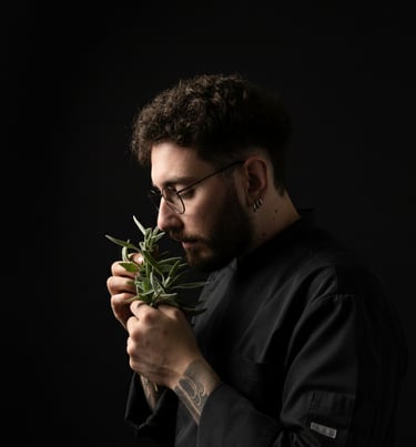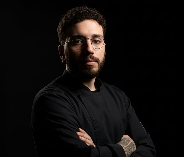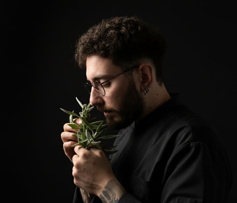 La mia cucina nasce dai profumi di casa e cresce nelle cucine di alto livello, fino a diventare un’esperienza elegante, sensoriale e fuori dagli schemi.